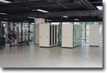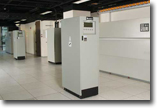 6 backup generators range from a 150KW to 2,000KW per unit. All power passes through automatic transfer switches that seamlessly transfer power from utility provider to backup generators in seconds. Power is distributed to the various floors through a centralized conduit riser system. |